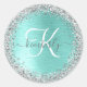 Teal Brushed Metal Silver Glitter Monogram Name Classic Round Sticker