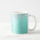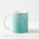 Easily personalise this trendy chic coffee mug design featuring pretty silver sparkling glitter on a teal brushed metallic background.