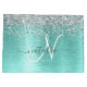 Teal Brushed Metal Silver Glitter Monogram Name Large Gift Bag