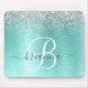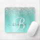 Teal Brushed Metal Silver Glitter Monogram Name Mouse Pad