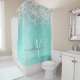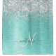 Teal Brushed Metal Silver Glitter Monogram Name Shower Curtain