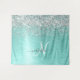 Teal Brushed Metal Silver Glitter Monogram Name Tapestry