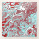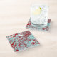 Teal, Burgundy, Red and White Marble Swirls Glass Coaster