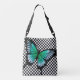 Teal Butterfly Classic Chequered Cross Body Tote B