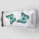 Protect your golf clubs with this unique Teal Butterfly Floral Personalised Golf Head Cover. Cover design features a pair of vibrant butterflies resting on a white floral vine against a light grey grunge background. Additional gift items available with this design as well as a variety of colours.