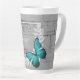 Enjoy your latte or morning coffee with a Teal Butterfly Rustic Personalised Latte Mug. Mug design features a vibrant butterfly resting on delicate foliage with a space to add your name against a rustic wooden background. Additional gift items available with this design as well as a variety of colours.