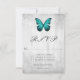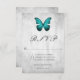 Elegant and simple Wedding Response Card featuring a teal butterfly against a grey grunge background. This trendy design is a unique choice for a modern wedding. Easy to customise with your wedding details. Click "Customise It" to find more personalisation options.