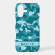 Customize this teal camouflage iPhone 17 case with your name in a trendy modern CAP font in dark teal on light teal. It's so modern, girly and trendy! Perfect for any country girl!