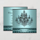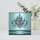 Elegant teal blue and black damask with beautiful crystal chandelier woman's fortieth birthday party invitation.
