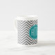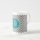 Teal Charcoal Chevrons Custom Monogram Bone China Mug