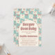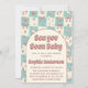 Teal Chequerboard Seashell Bow Baby Shower Invitation