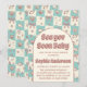 Celebrate your little one on the way with this charming pastel beach-themed baby shower invitation. Featuring a soft teal chequerboard background adorned with delicate seashells, bows, and ocean-inspired illustrations, this design creates a sweet and calming coastal vibe.