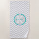 Personalise a unique gift for any beach lover with a Teal Chevron Monogram Beach Towel. Beach towel design features a light grey chevron pattern with a circle emblem outlined in teal and an area to personalise with your name and monogram. Additional items available with this design as well. Please contact me directly for assistance with personalisation.