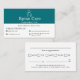 Promote your chiropractor office with this modern teal business card featuring an appointment reminder design. The clean layout and soothing teal tone communicate wellness and professionalism while keeping all patient details clear and print-ready.