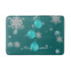 Add a festive touch to your bath decor this holiday season with a Teal Christmas Ornaments Bath Mat. Bath mat design features a trio of hanging Christmas ornaments with falling snowflakes and a dark teal background. Additional gift and holiday items available with this design as well.
