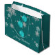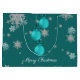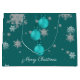 Gift your Christmas presents this holiday season with a Teal Christmas Ornaments Gift Bag. Gift bag design features a trio of hanging Christmas ornaments with falling snowflakes and a dark teal background. Additional gift and holiday items available with this design as well.