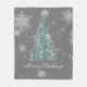 Teal Christmas Tree and Snowflakes Fleece Blanket