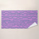 This towel set has an art deco design that looks like likes on a circuit board. The lines are running vertically in teal on a field of purple. Want a different colour? Message me.