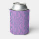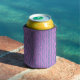 This can cooler has an art deco design that looks like likes on a circuit board. The lines are running vertically in teal on a field of purple. Want a different colour? Message me.