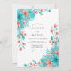 Teal Coral Botanical Romance Wedding Invitation