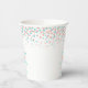 Personalise these wedding party paper cups with your own couple's names and wedding date. Scattering of round dot confetti in aqua and coral orange. Other matching items and colour options are available. Original graphic art and design by Sarah Trett for www.mylittleedenweddings.com