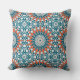 Add vibrancy and calm in one piece. This pillow showcases a teal and coral mandala with crisp white and taupe accents, blending bold colour with peaceful rhythm. Perfect for brightening a sofa, chair, or bed with artful energy and inviting warmth.