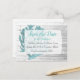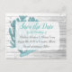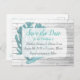 Beachy teal coral and sand dollar with rustic white washed beach wood Wedding Save the Date Postcards
