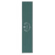 Elegant teal coloured table runner with graphics of a silver tone flourish and crown text area and custom text. Personalise the text to this lovely addition to your dining table.