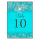 Teal Crystal Pearl Snowflake Table Number Card