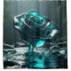 “Teal Crystal Rose with Falling Raindrops" Shower Curtain