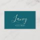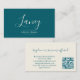 Easily customize this elegant script teal business card template with your name, contact details, and QR code for a great calling card. This stylish dark teal green and cream business card with modern stylish script can be edited for your purposes. Add your name and tagline or business on the front. On the back is a place for more custom text and your QR code. The simple stylish custom business card would be ideal for an interior designer, a sports therapist, a life coach, a financial advisor, a beautician, make up artist, spa, hair and nails specialist.