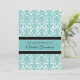 Bridal luncheon invitations in elegant turquoise blue, black and white classic floral damask pattern, elegant and feminine, customisable with your shower details. Also available in thank you cards and invitations for the bridal party.
