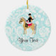 Teal Damask Equestrian Ceramic Tree Decoration