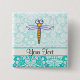 Teal Damask Pattern Dragonfly 15 Cm Square Badge