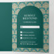 Teal Damask Pattern Moroccan Arch Wedding Photo Tri-Fold Invitation