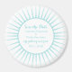 Sophisticated and elegant Deco Retro Save the Date Magnet in turquoise featuring a circular art deco ornamental sunburst design. Easy to customise, simply add your wedding details in the text fields provided. Click "Customise It" to find more personalisation options.