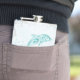 Enjoy your favourite alcoholic beverages anytime with a Teal Dolphin Vinyl Wrapped Flask. Flask design features a vibrant metallic dolphin against a muted seascape adorned elegant scrolls. Additional gift items available with this design as well.