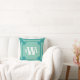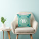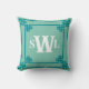 Teal Double Greek Key Monogram Design Cushion