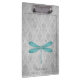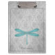 Jot down notes and reminders on a secure surface with a Teal Dragonfly Damask Personalised Clipboard. Clipboard design features a colourful dragonfly against an elegant vintage grey damask pattern. Additional gift items available with this design as well as a variety of colours.
