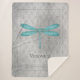 Teal Dragonfly Damask Personalised Sherpa Blanket