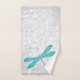 Add an elegant touch to your bath with a Teal Dragonfly Personalised Bath Towel Set. Towel set design features a colourful dragonfly, a soft white leafy vine against a light grey grunge damask background with an area to personalise with your name. Additional gift items available with this design as well as a variety of colours.