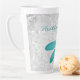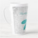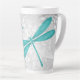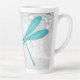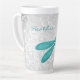 Enjoy your latte or morning coffee with a Teal Dragonfly Personalised Latte Mug. Mug design features a colourful dragonfly, a soft white leafy vine against a light grey grunge damask background with an area to personalise with your name. Additional gift items available with this design as well as a variety of colours.