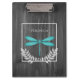 Jot down notes and reminders on a secure surface with a Teal Dragonfly Rustic Personalised Clipboard. Clipboard design features a vibrant dragonfly adorned with delicate foliage against a dark grey rustic wooden background. Additional gift items available with this design as well as a variety of colours.