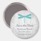 Elegant and simple Save The Date magnet featuring a teal dragonfly against a grey grunge background. This design is a unique choice for announcing a modern wedding. Easy to customise with your wedding details. Click "Customise It" to find more personalisation options.