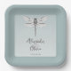 Personalise a simple and elegant paper plate for wedding reception guests with a set of Teal Dragonfly Wedding Paper Plates. Paper Plate design features a simple and elegant dragonfly with elegant script and modern typography for the bride and grooms' names and wedding date. Perfect for the couple having a dragonfly theme wedding. Additional wedding stationery and supply available with this design as well.
