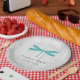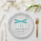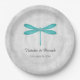 Elegant and simple Wedding paper plates featuring a teal dragonfly against a grey grunge background. This design is a unique choice for a modern wedding. Easy to customise with your wedding details. Click "Customise It" to find more personalisation options.