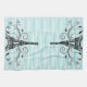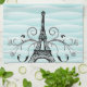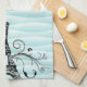 The Teal Eiffel Towel Flourish Kitchen Towel features a design of a vibrant wavy background with the Eiffel Tower adorned with elegant flourishes. Additional colours available with this design as well. Additional colours available with this design as well.