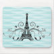 Teal Eiffel Tower Flourish Mouse Pad