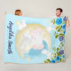 Teal Elephant Crescent Moon Personalised Name Fleece Blanket