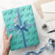 Teal Fancy Monogram Shiny Turquoise Faux Foil Wrapping Paper